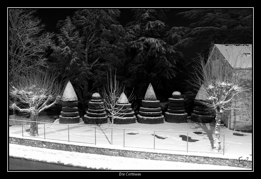 Mon idée était de faire une photo de nuit des toits du village sous la lumière de l'éclairage public. Le problème, c'est qu'en Limousin, il y a des arbres partout ! Faut dire aussi que je n'ai pas voulu prendre de nuit les petites routes pas déneigées.