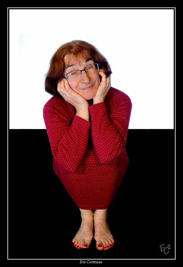 Mais j'ai du mal à lire la photo. Je trouve aussi que le fond est trop lumineux et que les reflets bleus du drapé noir sont disgracieux... par contre tu as bien géré les reflets dans les lunettes !