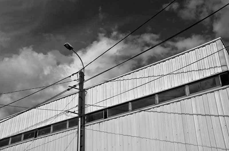 pourquoi pas : j'ai toujours trouvé fascinant la capacité de certains à proposer ds cadrages tels qu'ils animent un lieu, un bâtiment ou un objet dont la banalité le rend habituellement inexistant ou transparent... je trouve que ton cadrage donne un certain dynamisme, une certaine identité à ce bout d’entrepôt qui j'aurai très certainement laissé de côté sans même essayer de le prendre en photo!