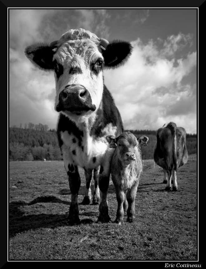 Mouaif ... perso, je trouve que la justification de l'emploi du grand angle (mère protectrice) se trouve perturbé (contrarié) par cette 3ème vache vue de derrière ... Tu m'en veux pas, dis ? ...
