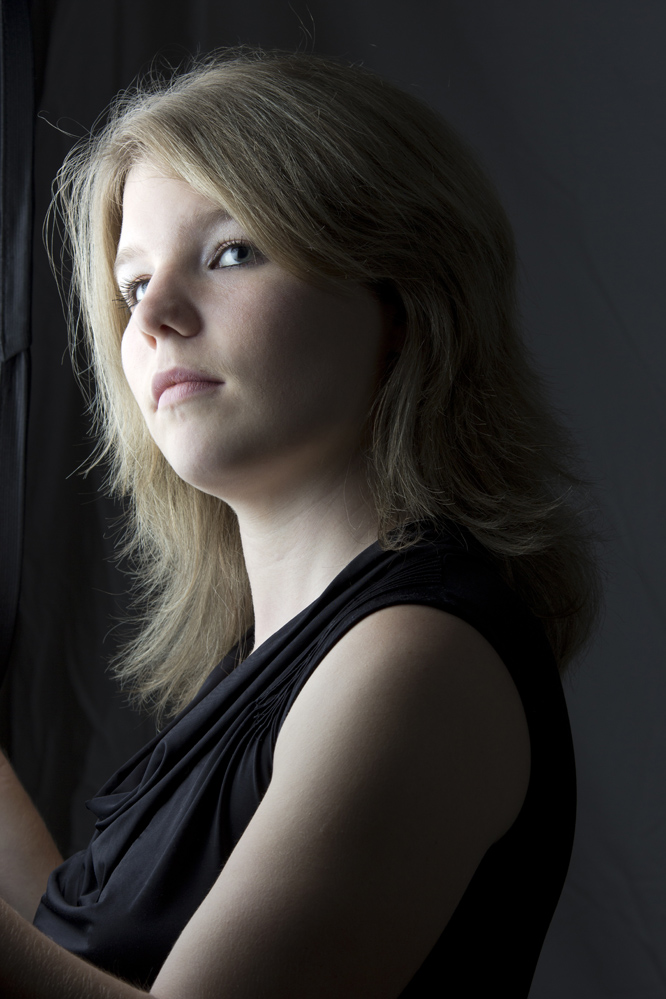 -le cadrage : on a l'impression que la demoiselle est en train de sortir de l'image, la position des bras coupés me parait hasardeuse. De plus, elle regarde on ne sait où mais vers l'extérieur et en hauteur.