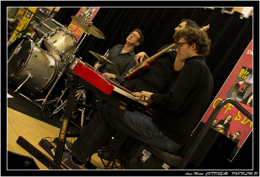 Samedi, fin d'après-midi à Leclerc, Show-case de OFF SIX avec Stéphane Rocher au clavier