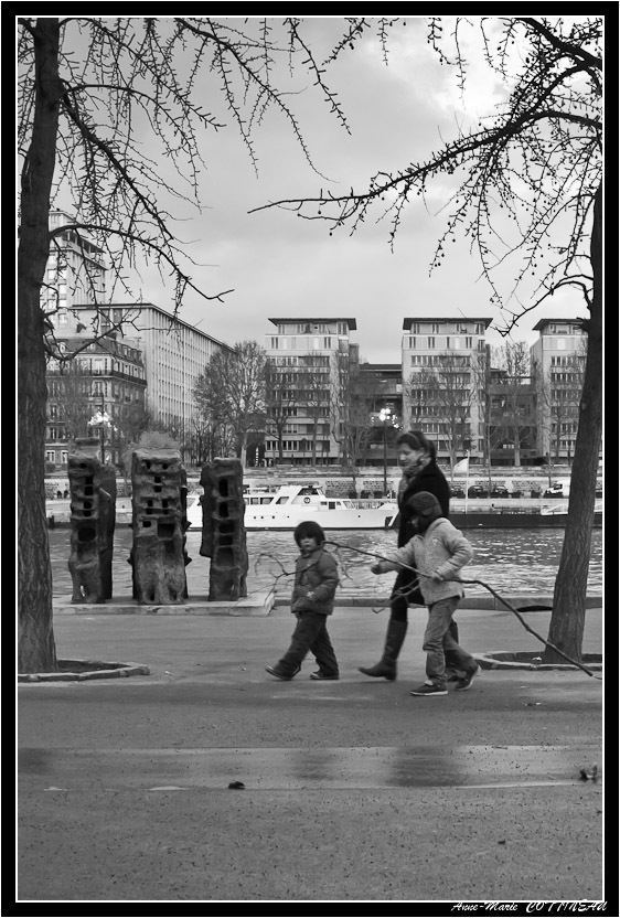 En fait la seconde et à peu près comme je voulais la faire pour : les 3 arbres, 3 personnes et 3 blocs sculptés... Les teintes froides sont liées à l'heure de prise de vue juste au coucher du soleil, temps couvert en hiver (hier!)