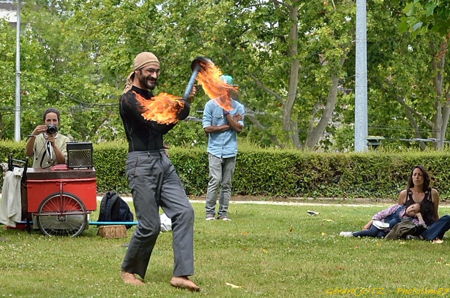 Samedi midi , la Cie "c'est pas permis" une pause avec du jonglage et de l'équilibre avec objets non identifiés.