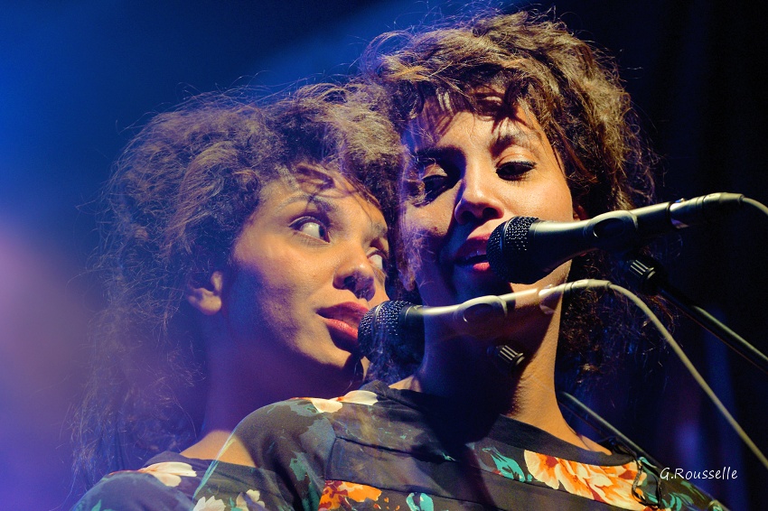 Les couleurs notamment de la peau et cheveux ça m'impressionne, la surimpression ça me semble pas évident au niveau de ce que l'image convoie comme message. La 2 et la 4 j'aime car la chanteuse reste au premier plan, c'est elle qui mène le sepctacle et épaulée par la violoniste qui ne la domine pas au niveau de l'image.