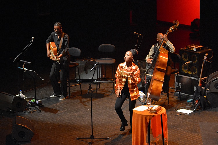Je m'essaie au noir et blanc, parce qu'à Expression 7 et au foyer du théâtre, pas terribles les lumières.