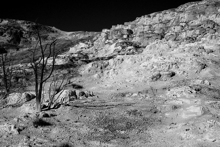 Pas loin, Eric... les 2 viennent du même endroit... C'est les terrasses de Mamoth Hot Spring... tout au Nord de Yellowstone... ( C'est peut être bien dans le Montana, d'ailleurs)...hospitalité garantie : de l'acide et du calcaire... le tout en ébullition...