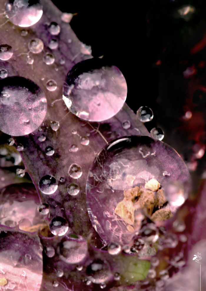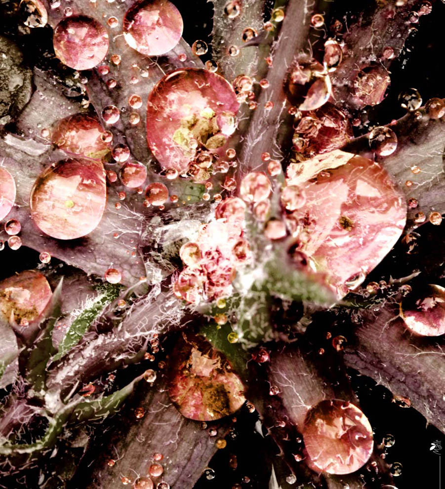 J'aime bien l'association des couleurs et de l'aspect perlé des gouttes pour leur côté joaillerie mais j'ai du mal à écarter l'impression que cela pourrait être des tentacules de micro-organisme !!...