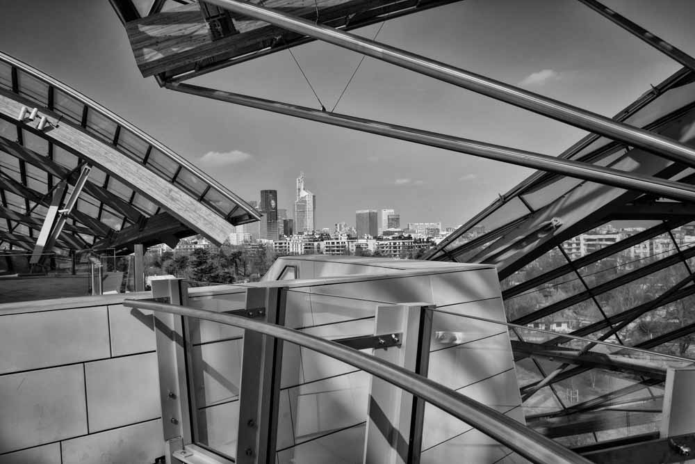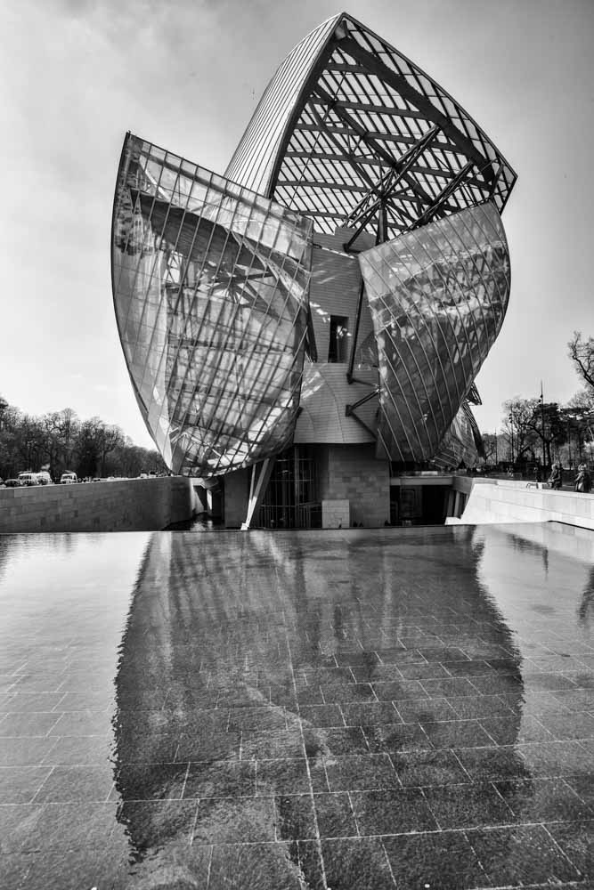 L'oeuvre de Frank Gehry a de l'allure, un monstre de beauté, prouesse technologique. Un immense bateau de verre. La question COULEUR ou NOIR ET BLANC ?