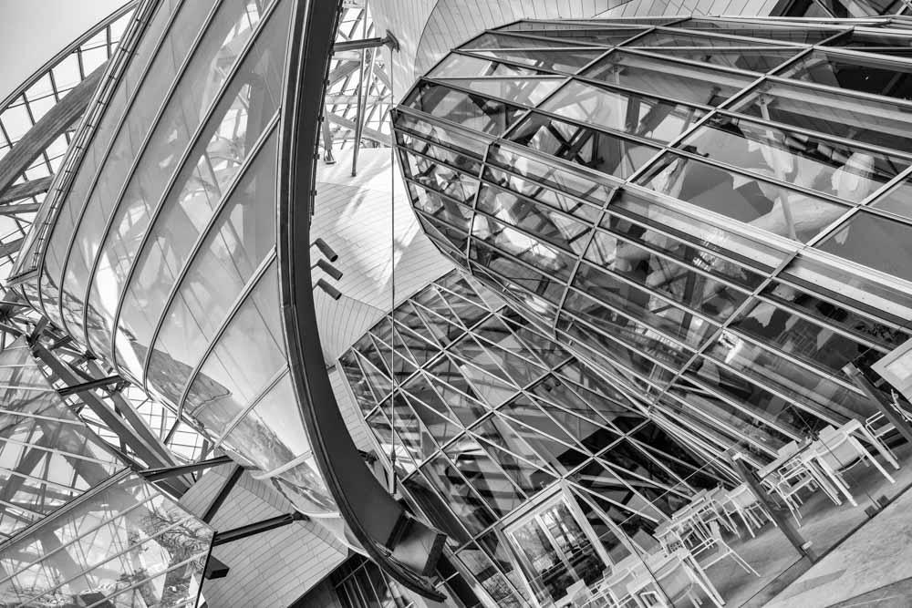 L'oeuvre de Frank Gehry a de l'allure, un monstre de beauté, prouesse technologique. Un immense bateau de verre. La question COULEUR ou NOIR ET BLANC ?