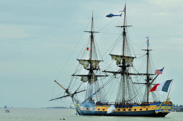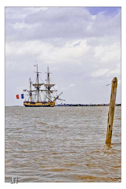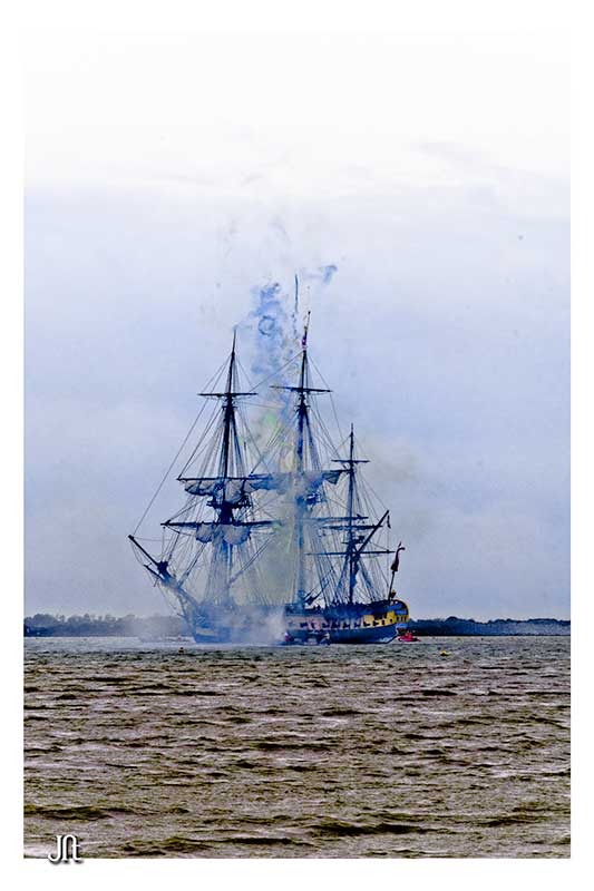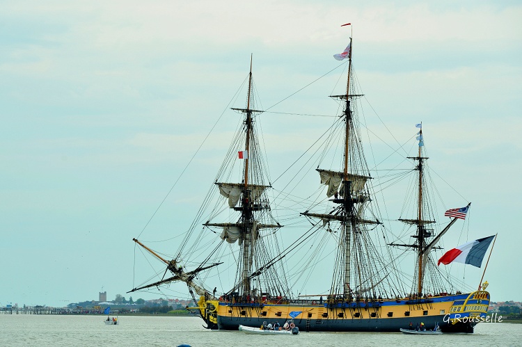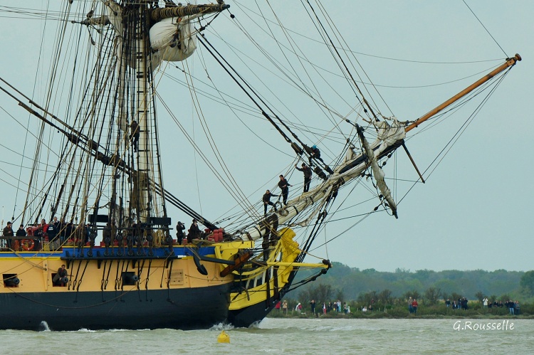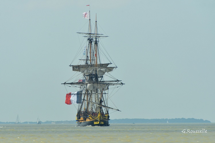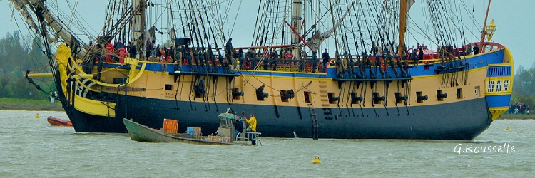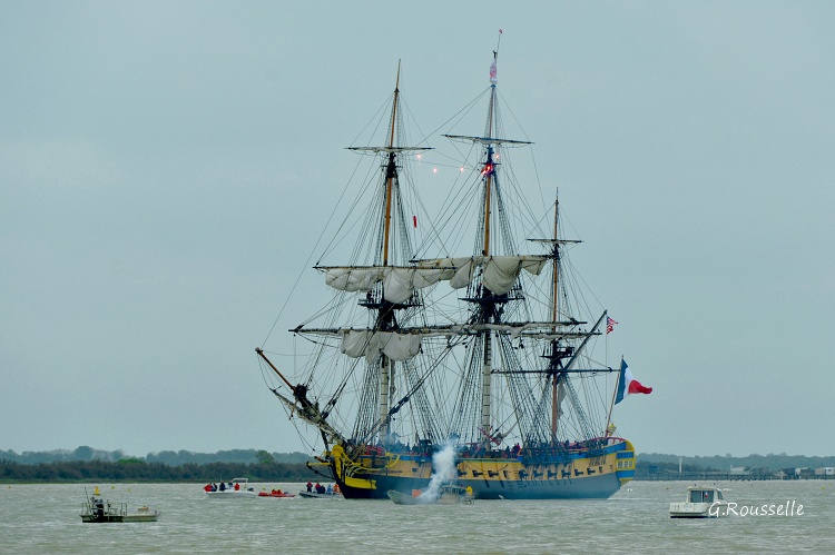 Bon alors oui,ce fut enthousiasment,seul bémol le temps n'était pas de notre coté,le soleil ne fut présent que lors de la parade autour de l'ile d'Aix ,et quand(2h après)l'Hermione arriva a notre QG,la GRIIIsaille avait pris le dessus.:rolleyes::mad: