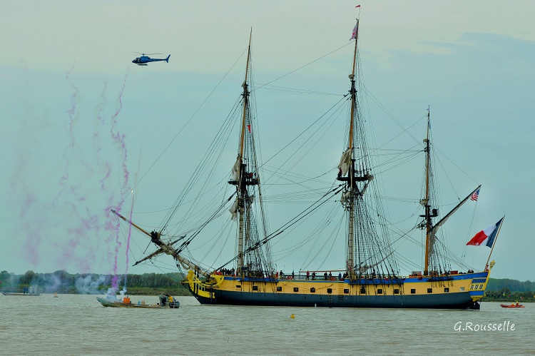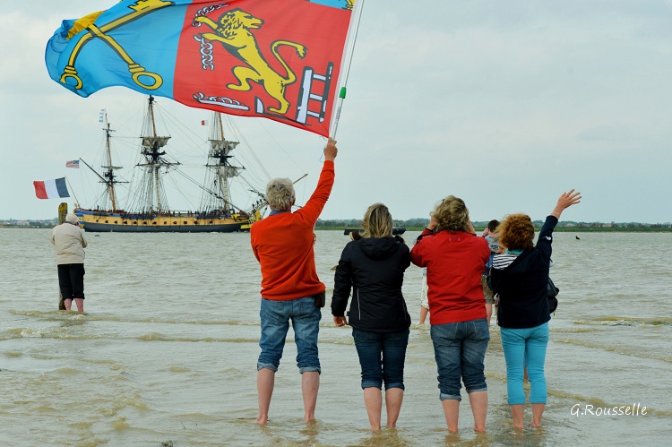 Bon alors oui,ce fut enthousiasment,seul bémol le temps n'était pas de notre coté,le soleil ne fut présent que lors de la parade autour de l'ile d'Aix ,et quand(2h après)l'Hermione arriva a notre QG,la GRIIIsaille avait pris le dessus.:rolleyes::mad:
