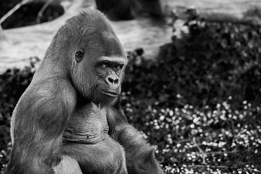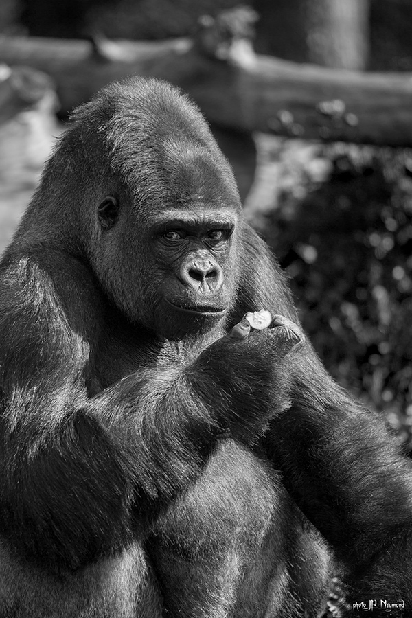 les grands singes sont, eux, un peu mois accessibles. Les Bonobos et Chimpanzés parce qu'ils sont agressifs, donc dangereux, les Gorilles parce qu'un Dos Argenté pèse tout de même 250kg et bien que totalement inoffensif et dénué de méchanceté, son "affection" pourrait tout même laisser quelques marques à ses groupies... mais ton objectif permet tout de même de faire des portraits "en pieds" intéressants.