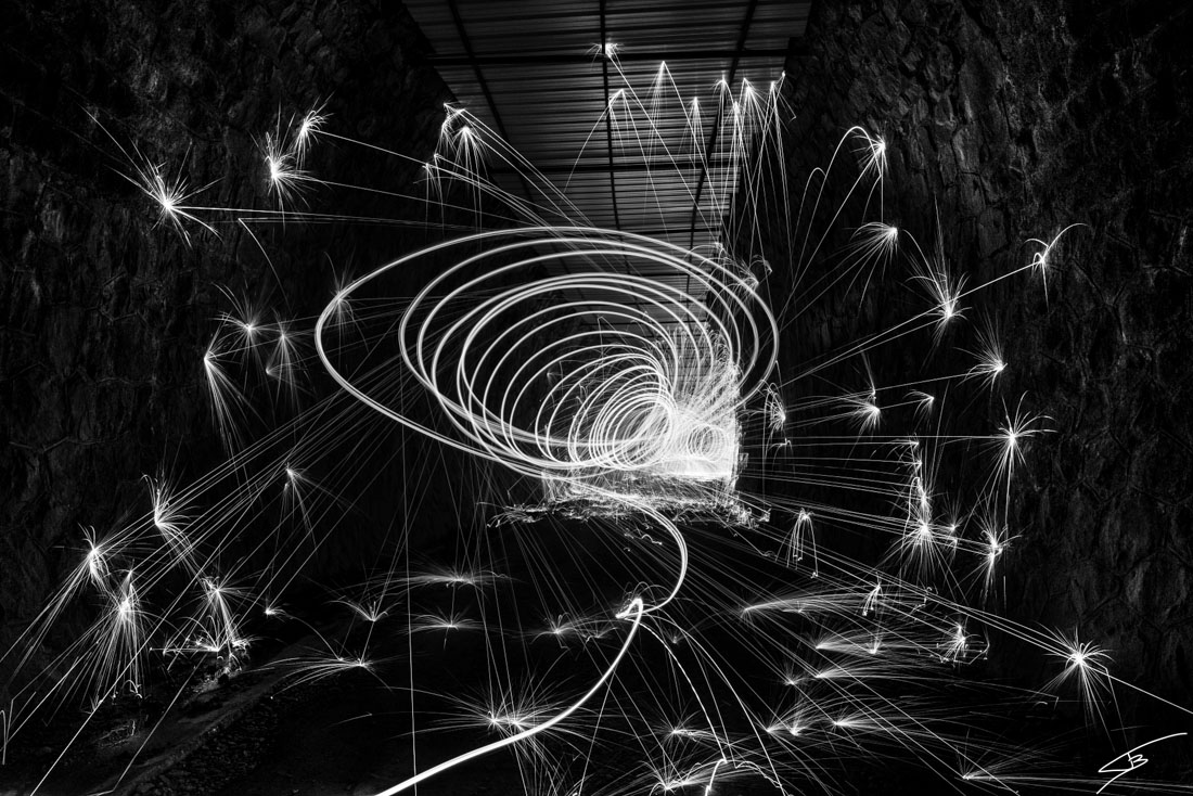 On enflamme la paille de fer et puis voila..une pause longue (20s) on ferme pas mal (f9-f11).prendre un haut avec une capuche et des vieux vêtements..