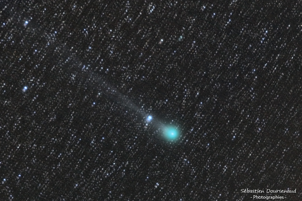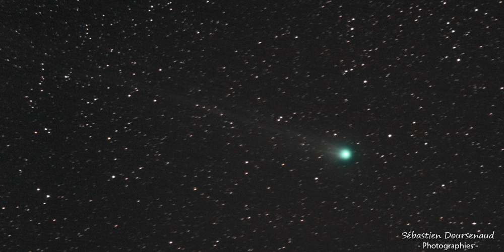 . J'ai quand même stoppé la séquence 2 ou 3 fois pour recentrer la comète dans le viseur puisqu'elle se déplace en même temps que le ciel d'autant plus vite que la focale est grande. Cela dit, tu peux programmer la séquence avec un intervallomètre, c'est ce que j'ai fait la veille de cette image où j'avais scindé la séquence de 300 poses en 6x50 poses avec recentrage à chaque interruption.