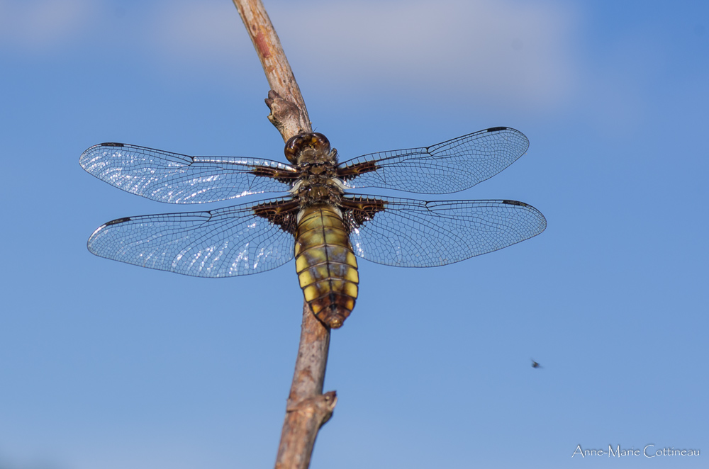 C'est une femelle de Libellule déprimée (Libellula depressa), le mâle est très reconnaissable avec son abdomen tout bleu ciel wink.