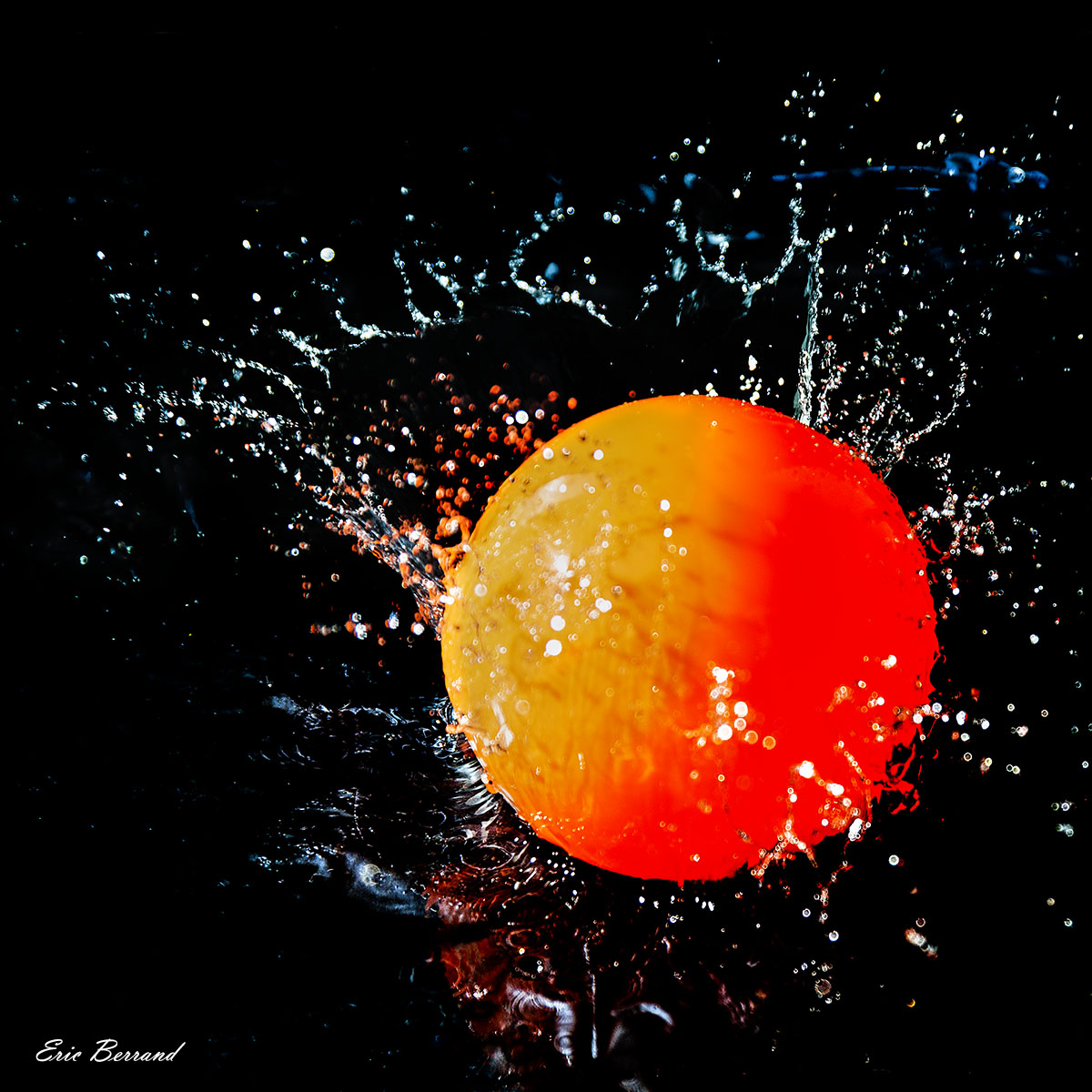 Je ne sais pas si le "carré" est ce qui lui va de mieux, je m'interroge sur ce cadrage... je pense qu'un "paysage" donnerait plus de dynamique au splash tout en décentrant la boule orange