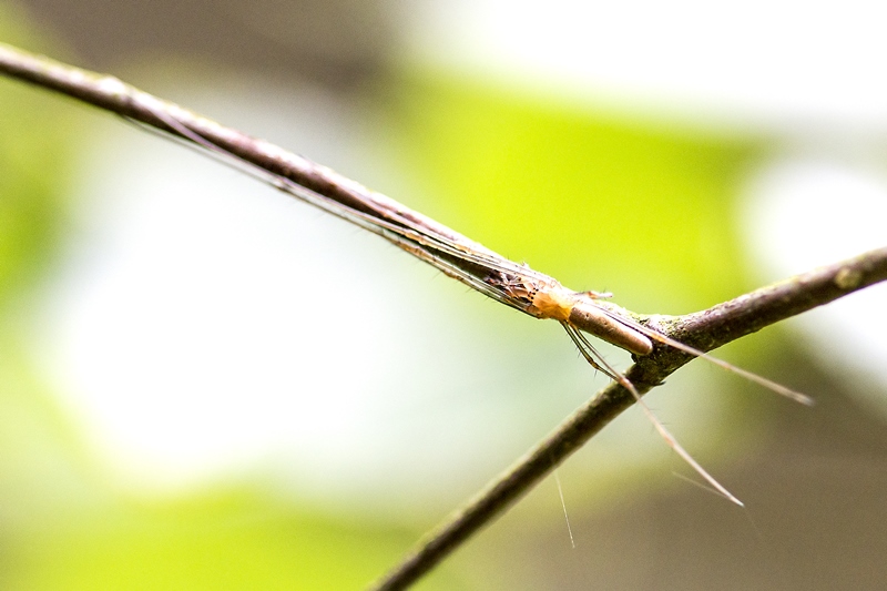 Etirements dans la lumière du matin pour une sportive longiligne ( je crois qu'il sagit de Tétragnathe )