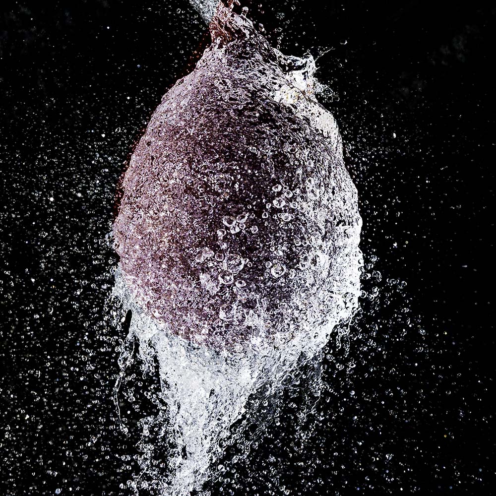 L'idée est très bien trouvée, j'imagine que le ballon lors de la rupture se contracte super rapidement laissant une forme à l'eau pendant un très court instant, déjà impressionné que tu ais pu trouve rune technique pour prendre le cliché au bon moment! En commentaire de premier ressenti je vais oser dire que le cadrage est trop serré, je présume que c'est pour cacher le fil qui tiens le ballon et l'objet qui vient l'éclater?