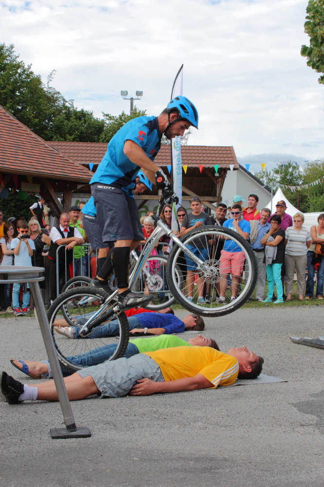 Animation sportif très pro (www.acrobike.com) à Meuzac lors du vide grenier.