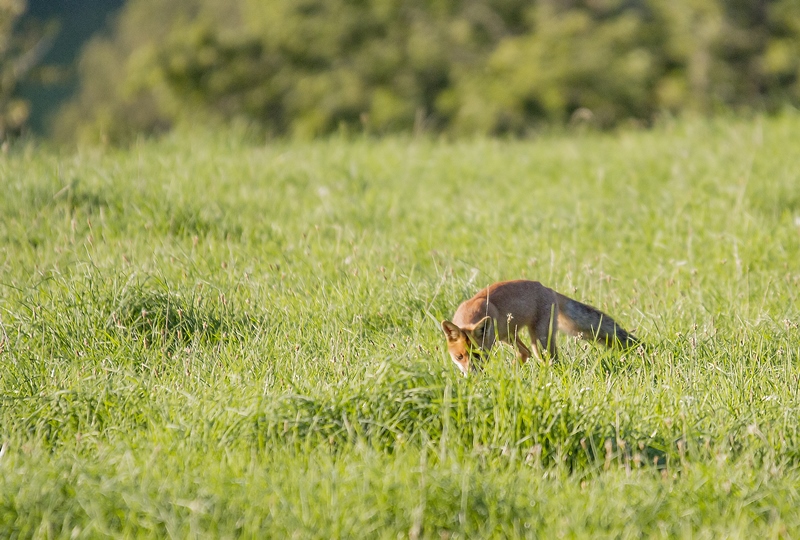 La qualité d'image n'est pas vraiment au rv, mais je voulais partager avec vous un peu de mon émotion : hier soir, à la billebaude, à la recherche d'un cerf, je "tombe" sur goupil : 1,2,3, "je cherche mon casse croute dans l'herbe haute", 4, " tiens, c'est quoi ce bruit de frottement et cette forme bizarre qui n'est pas là d'habitude", 5,6,7, "un bipède, sauve qui peut ..." ; le tout a duré moins 2 minutes ; j'ai vu 2 autres renards qui m'ont éventé trop tôt et un couple de chevreuils, même punition ; mais la soirée a été formidable.