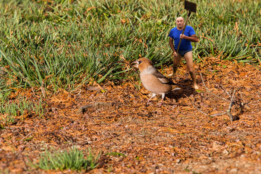 Oh punaise Slipman qui attaque un Gros-bec, boudiou...