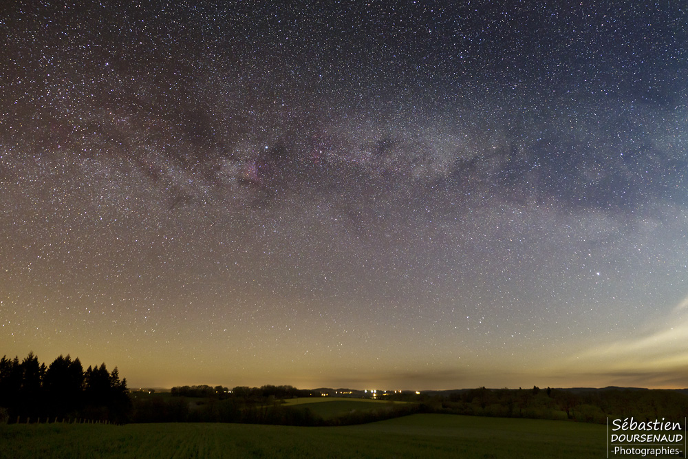 La Voie Lactée et les constellations du Cygne au Scorpion se dévoilent de l'horizon nord-est à l'horizon sud.