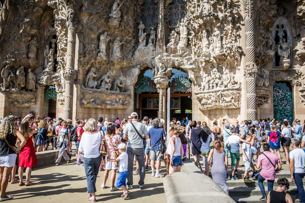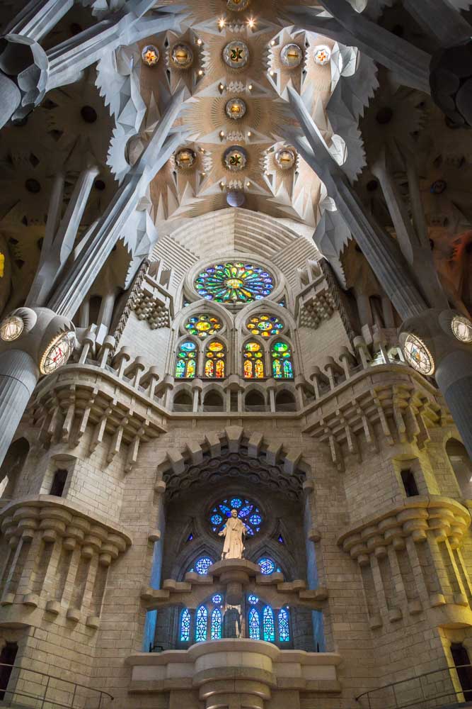 L'exterieur en plein soleil ne rend pas les photos faciles et la foule immense aidant ( 4 millions de visiteurs par an)? rentrons vite dans ce chef d'oeuvre de Gaudi. Mais avant, un conseil réglez bien la balance des blancs, les Iso ettout et tout, car les vitraux vont vous mettre à l'épreuve des températures extrêmes du bleu, du rouge se mélangent. La position M s'impose avec une bonne maitrise du boitier, belle expérience dans un univers grandiose.