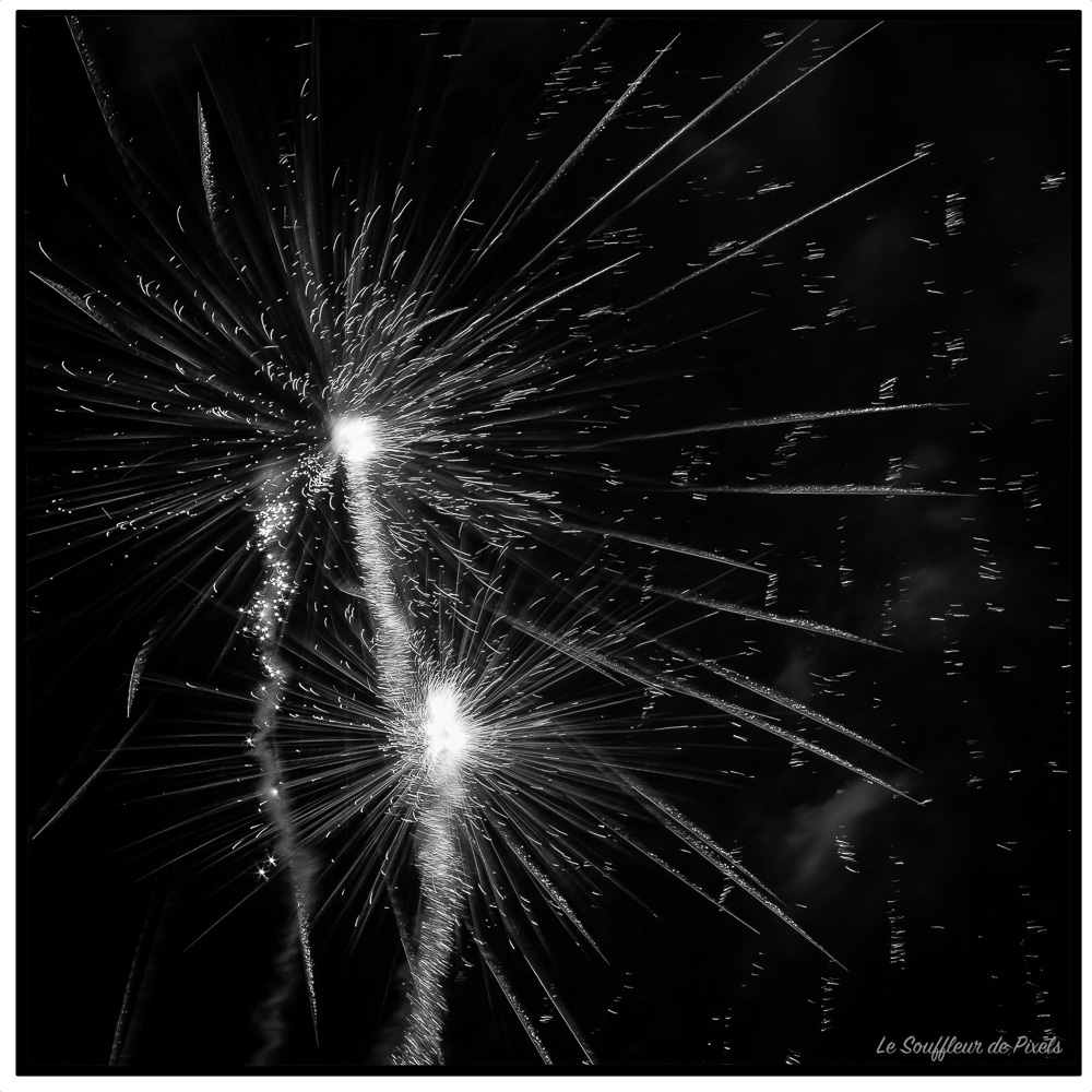 La question est : La conversion en noir et blanc et le format carré apportent-ils un plus au spectacle du feu d'artifices ? La réponse vous appartient cher(es)s photolimien(ne)s.