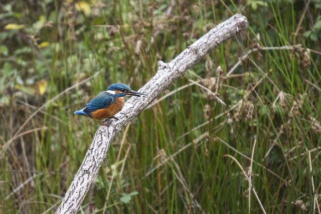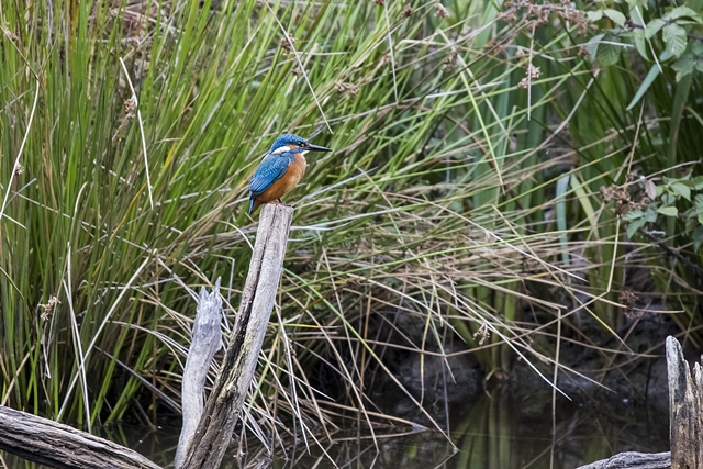Je pense que ce sont des roseaux... le perchoir est un arbre mort au milieu de l'eau les herbes se trouvent à 5 ou 6m derrière... Mais avec la lumière de merde qui régnait (il pleuvait)... pour garder une vitesse raisonnable (parce que la bête est turbulente, imprévisible et que 1/500 ne suffit pas) et une ouverture "convenable", l'ai dû monter de manière déraisonnable (pour le 7D) dans les zozos... alors çà peut être n'importe quoi, y compris du moiré
