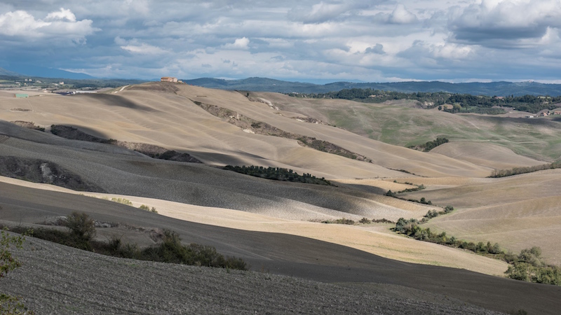 Au sud est de Sienne un paysage aride de terre argileuse fait suite au paysage riant et verdoyant du chianti. On rêverait de voir ces vallonnements changer au fil des saisons.
