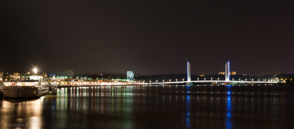 Autre problème à mon sens : la netteté. je trouve tes images très "molles" ; la zone de netteté n'est pas évidente, ou mal placée : à titre d'exemple sur ta dernière image (qui pour le coup ne penche pas), la zone de netteté a l'air d'être sur l'étoile du lampadaire sur la gauche, ce qui fait que le second plan de ton image (le pont) est flou... hors, la composition de ton pano met en valeur ledit second plan... du coup, ça ne marche pas ! C'est la même chose sur la n°2, sauf que ton 1er plan est plus "imposant" (le bateau) donc ça passe un peu mieux...