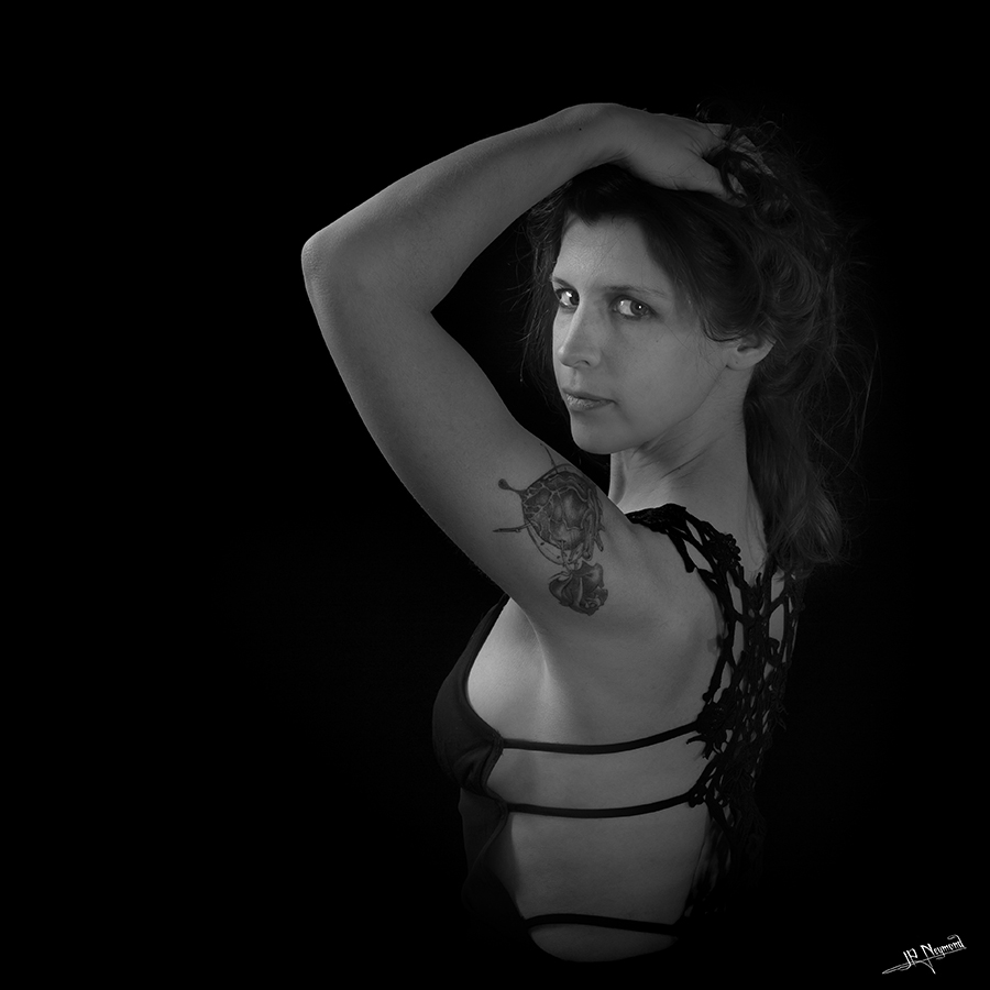Je ne suis pas expert mais très réussi, je ne trouve rien à redire. La photo respire, le modèle est éclairé homogénéiquement, elle se fond dans l'univers noir, top.
