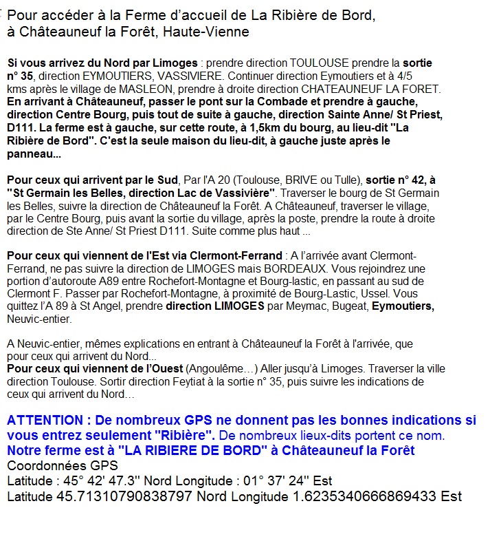 Pour ceux qui ne connaissent pas notre " petit coin de paradis" . Ci-joint les indications