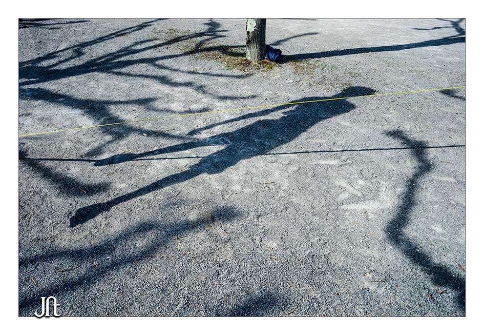 Par contre, j'ai laissé l'amorce du corps physique parce qu'elle permet - en tout cas je l'ai cru - un dialogue, un autre rapport, du spectateur avec l'ombre et la scène et resitue la scène dans un contexte "connu", plus identifiable et commun ... (il me semble assez facile d'éliminer cette amorce de jambe, sans recadrage)
