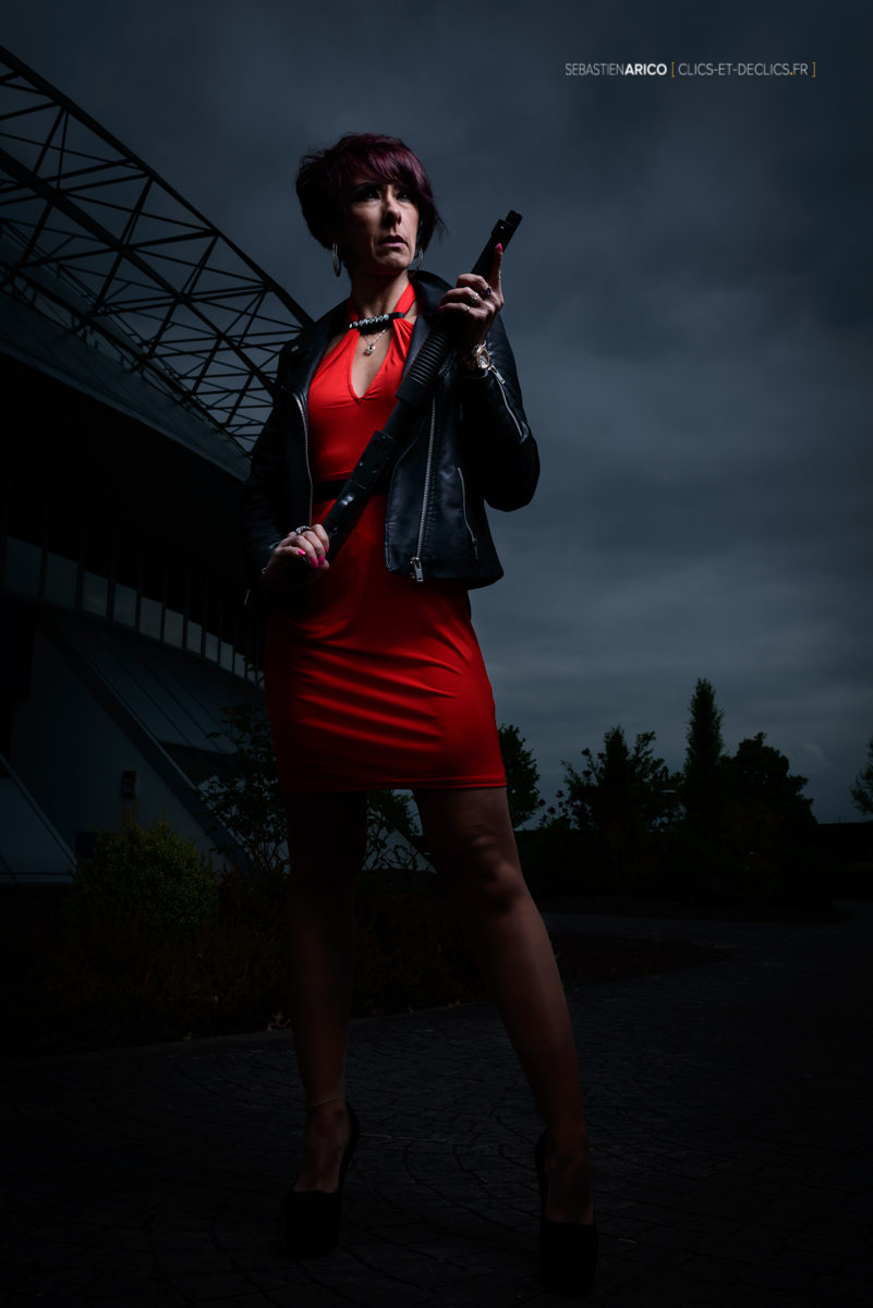 Par contre je n'ai pas sélectionné celles où elle tient le fusil derrière la tête, je trouve que ça lui fait des ombres bizarres et pas très gracieuses au niveau du sein gauche...