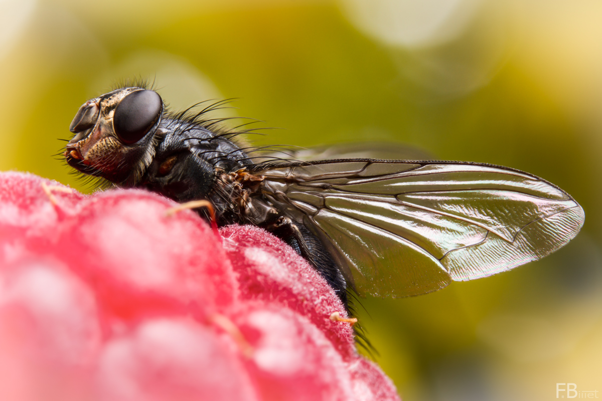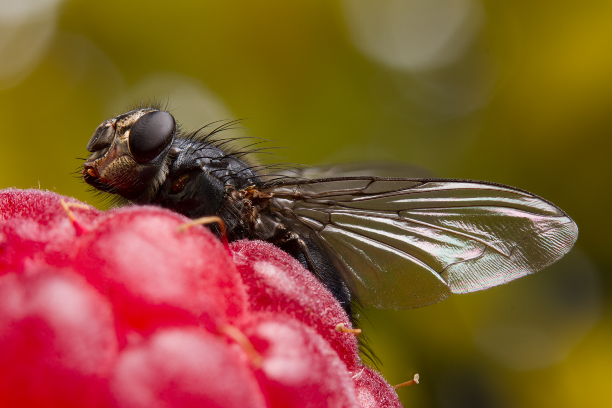 J'ai rectifié mes propos dans mon message précédent. La framboise n'est pas entièrement nette. Pour info, la framboise est un subterfuge pour tenter de faire oublier que la mouche a été trouvée sans ses pattes avant.