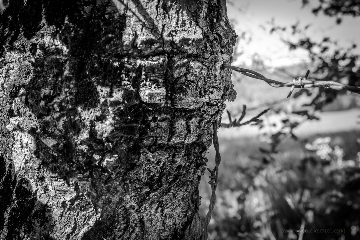 A mon tour, une petite dernière avec un tronc qui a pris le dessus sur un vilain barbelé