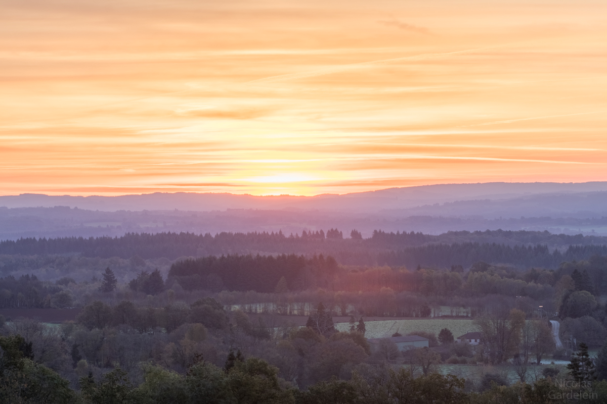 Au programme : lever du soleil dans l'herbe humide de La Jonchère Saint-Maurice, astiquage des objectifs à la pierre branlante