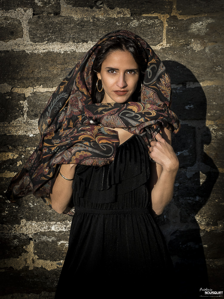 Les yeux et la carnation de Stéphanie sont mises en valeur par ce châle.