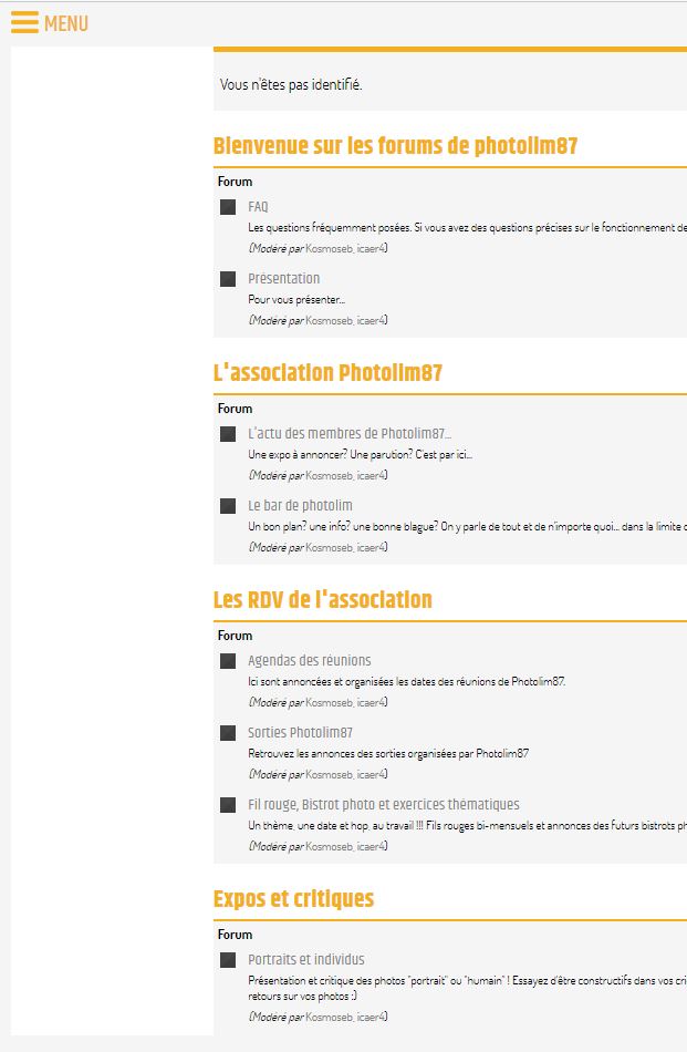 Accès aux rubriques du forum