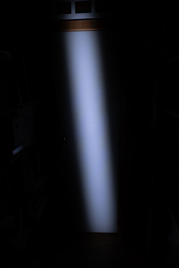 distance torche/porte 2m... les mesures au luxmètre donnent de 4500lx à 1000 lx selon de réglage de la Fresnel et le réglage de la puissance (continu par potentiomètre)