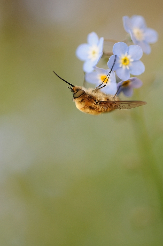 Bonjour à tous, voici une petite série d'un bombyle sur des myosotis.