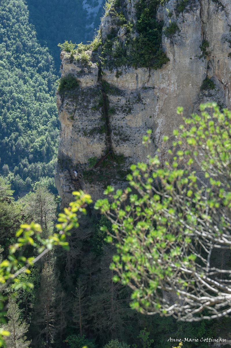 Pour accéder au belvédère du rocher du cingle gros : Photos au 50mm pour voir à peu près l'ensemble et photos à 420mm (APSC) 300mm + multiplicateur pour les grimpeurs aux échelles.