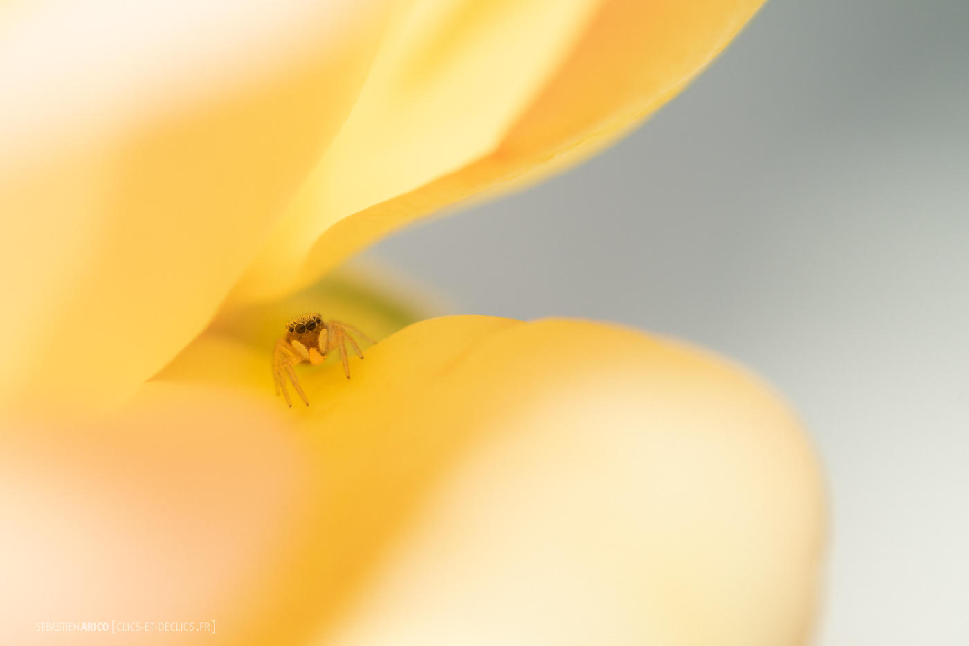 le fond jaune lui va comme un gant, à cette petite araignée...