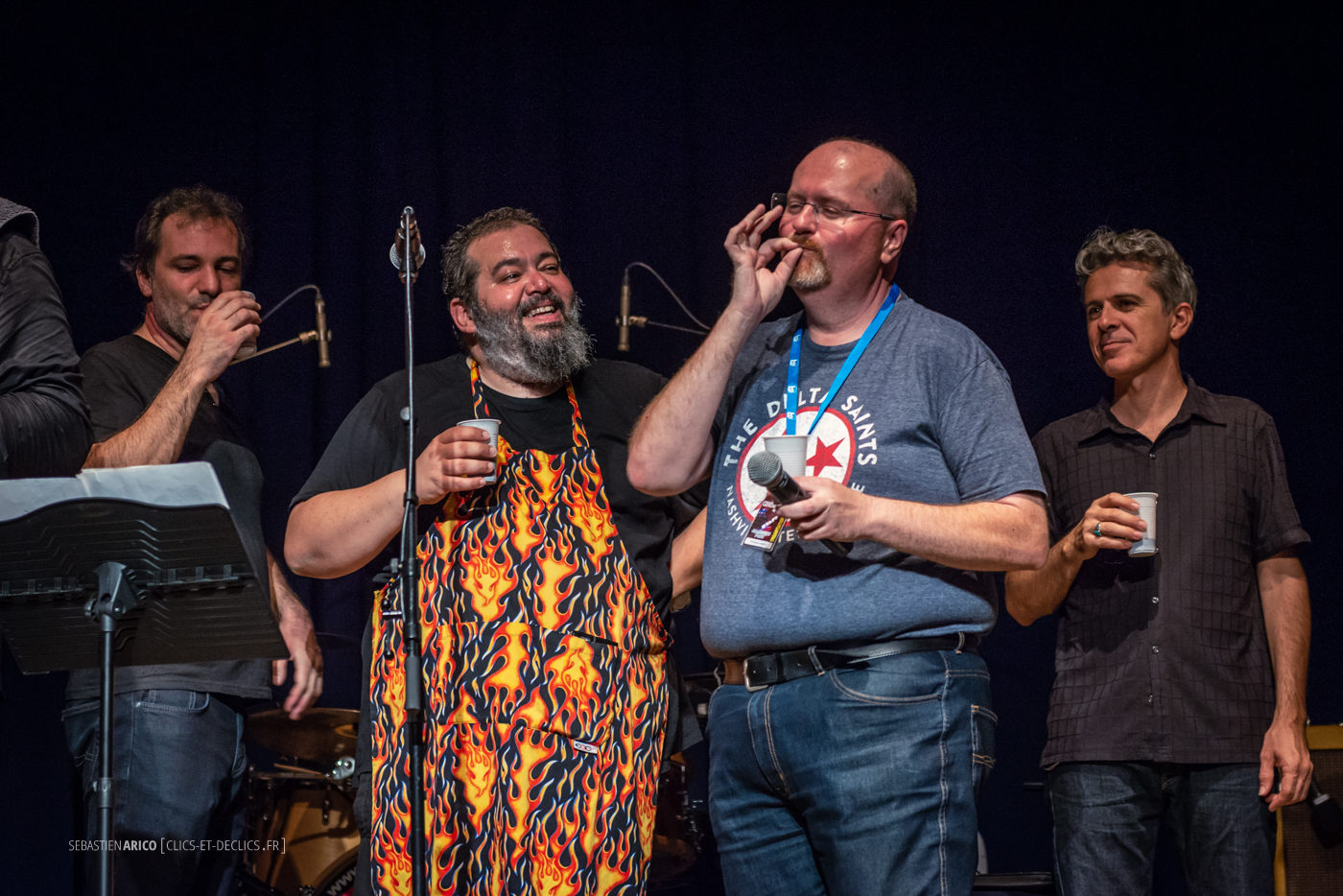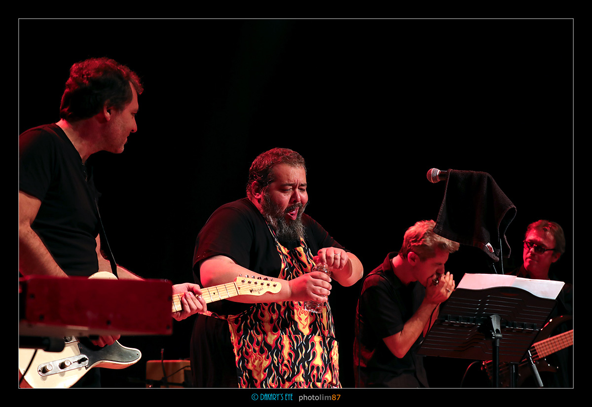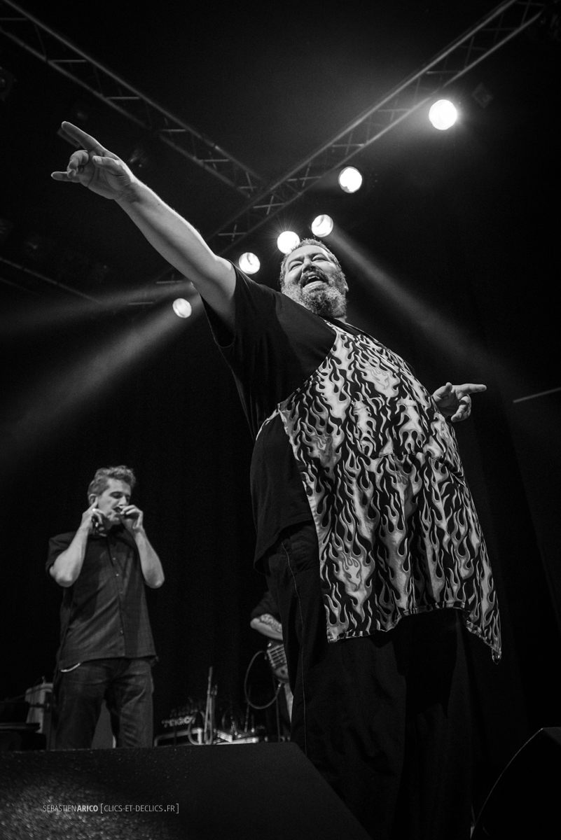 Lors de la clôture du Condat City Limits Festival, les Devil's Grub nous ont préparé une tambouille assaisonnée à point ! Quelques Gombos, un peu de rock, une pincée de funk et d'harmonica et nous voilà sous le charme de la voix puissante de Massimo Ferrauto, notre cuistot du soir, tout en tablier et en verve, accompagnée des riffs d'Aurelien Morro, l'énergie de Miguel Pereira et les accords de Frederic Canifet (au clavier), Zen Pat (Patman à la basse) et Marco Pandolfi (à l'harmonica) !