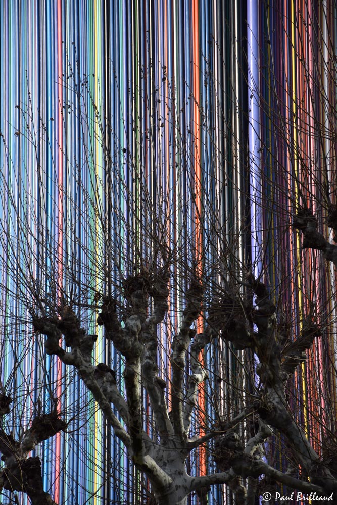 c'est bien ça, la cheminée de Moretti sur l'esplanade de la défense, il parait qu'elle a été construite en 1995 (je suis passé plein de fois devant sans la voir, en même temps je n'avais pas besoin de chercher des rayures).