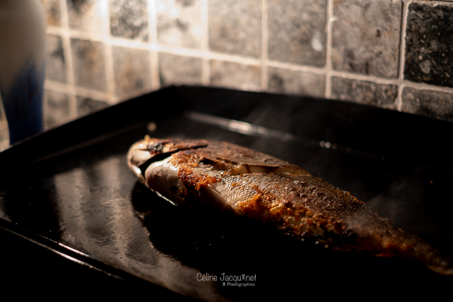 Premier barbecue de l'année... fin de cuisson nocturne pour une dorade à la plancha !