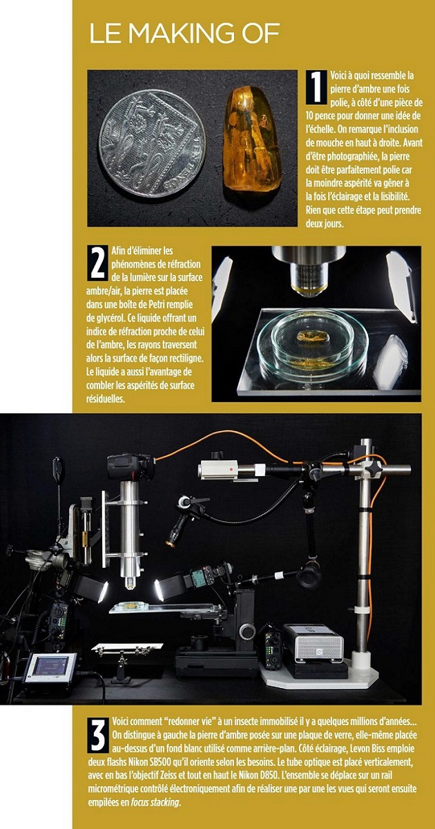 Ce photographe anglais a fait un travail remarquable : Avec un système de microscope ingénieux monté avec un APN et des lumières sophistiquées. Il a réalisé