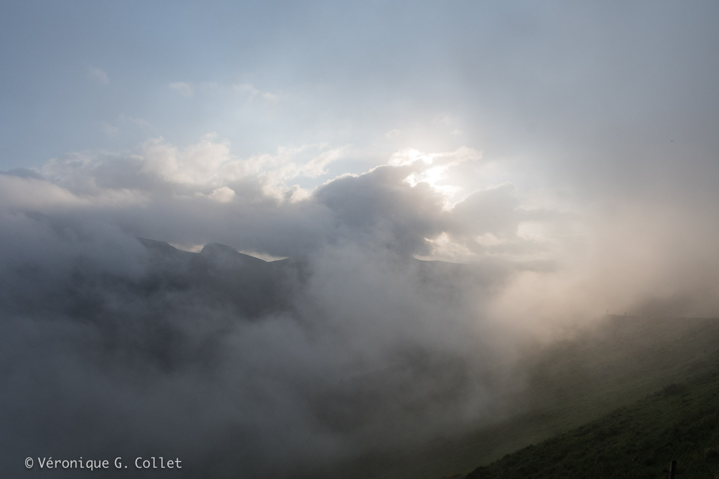 Malgré des efforts louables, la table d'orientation sera notre seul repère dans cette immensité cotonneuse où difficilement se devine les sommets polis des vieux volcans.